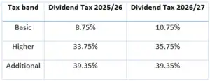From April 2026, ordinary and upper rates of tax on dividend income will rise by 2% – the table below shows the before and after at a glance:
