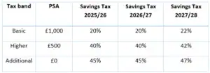 And it’s not only the tax on your earnings that will be affected – as your marginal tax rate increases, your Personal Savings Allowance shrinks, which brings us on to the next key change.