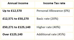 After you have taken the full tax-free lump sum available, the same rates of Income Tax apply as they do to employed income.